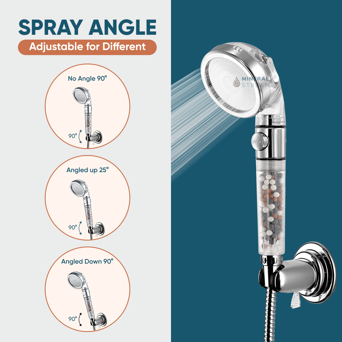 • Adjustable Angle: Easily set your shower head to your desired angle for a customized showering experience.